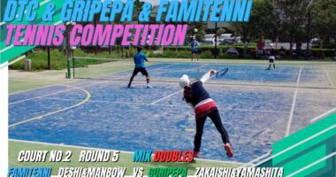 【テニス/交流戦】2番コート第5ラウンド【グリペパ】vs【ファミテニ】のミックスダブルス!【ファミテニ】の若い力に翻弄されるザカイシ&山下ペア!突破口は見つ…