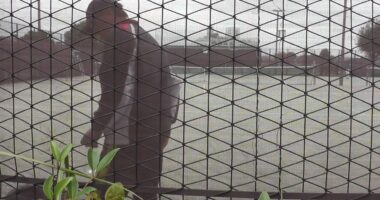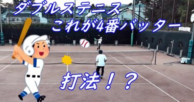 ダブルステニス!【これが4番バッター打法!?】中々上達しないテニスです。西日はおさまりました。バックスイングが、野球の左バッターになってますね!?~…
