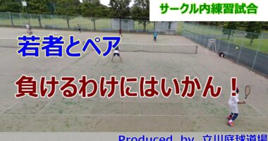 【テニス試合動画】【ダブルス】ベテランテニスでさんざんなプレーをしたメンバーが、今度は若者と組んでベテランペアと対戦。前回の空振りの屈辱から立ち直れるのか!…