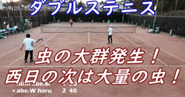 ダブルステニス!【西日の次は虫の大群!?】中々上達しないテニスです。西日がヤバすぎるコートですが、その次は何と虫の大群発生!~!2023/11~上高…