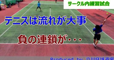 【テニス試合動画】【ダブルス】最近体験参加をしている「体験くん」!体験くんのリズムがあわなかったのか、既存メンバーがありえないミスの連発・・・テニス…