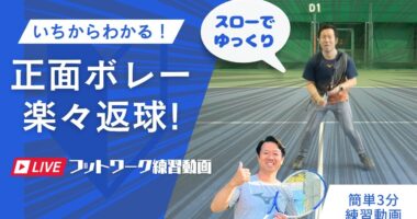 【ボレー】正面ボレーが簡単返球!スローでゆっくり見たままフットワークLIVE練習『簡単3分練習』【無料化!】テニスONLINEスクールはこちら→】h…