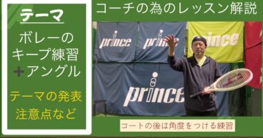 テニスコーチのお仕事 キノシタさん送別レッスン解説4週目 テーマ・ボレーの反復とワイドなボレーコート後ろで球出し 表はボレストコーチボレストサー…