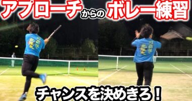 【練習動画】斜め前に出てボレーする!!初心者がダブルスで意識するべきことを解説しました!今回は苦手を克服するために、アプローチからのボレー練習をやり…