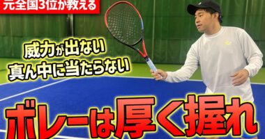 【上達できるテニス動画】ボレーは厚く握れ!握り変えるだけで攻撃力激増するフォア―ボレーの極意!元全国3位が教えるフォア―ボレー改善講座〈ぬいさんぽテニス(T…