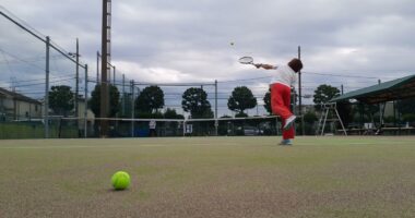 切り返しのボレーで魅せる華麗なプレーテニスを楽しむ仲間内のいつもの練習風景あれが苦手、これができないひっくるめて【楽しんだもの勝ち】の精神で少…