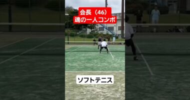 ソフトテニス 46歳魂の一人コンボ 大会 ボレー 軟式テニスソフトテニス テニス 軟式テニス 大会 会長 ボレー 試合 さすがです プレー…