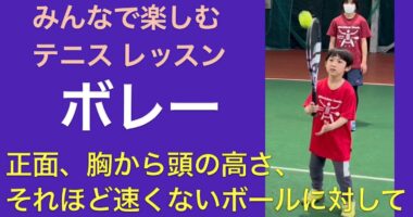 みんなで楽しむテニスレッスン ボレー 「正面、胸から頭の高さ、それほど速くないボールに対して」…