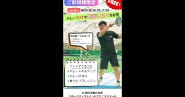 【無料】ボレー”だけ”特訓会by秋山プロC 春日部でテニスするならマックス!(※ご新規様限定)■こんな方におすすめ・ボレーの練習する機会に恵まれな…