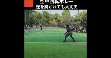 逆を突かれても反応する空中回転ボレー_LETTテニスダブルス'251005 #tennis #テニスサークル #テニス #ダブルス #空中回転 #ボレー …