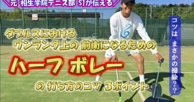 これであなたも 超上級ダブラーだ!技あり!ハーフボレー習得に必要なポイントを超簡単解説!!今回は、ダブルス前衛が試合中に1回は使うであろう、ハーフボ…