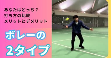 ボレーの2タイプ比較/打ち方の違いとメリット&デメリットボレーには厚くフラット気味に当てる打ち方とスライス気味に当てる打ち方の2種類があります。打…