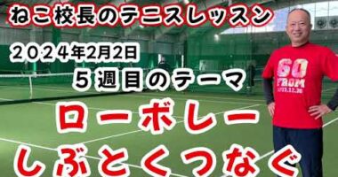 ねこ校長のテニスレッスン2/2レッスンドキュメンタリー 低いボレーの習熟2024年キンイチD 2/2低いボレーの判断とラリーキープお約束練習の…