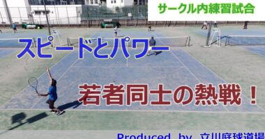 【テニス試合動画】【ダブルス】サーブが速い、リターンが速い、ボレーが速い、ストロークが重い、若者メンバー同士の激しく熱い戦い!テニスサークル「立川庭…