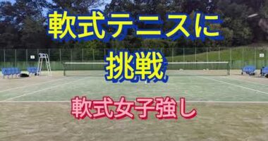 門番、軟式テニスに挑戦、軟式女子強し門番が硬式流でで軟式テニスに挑戦しています。フォアはセミウエスタン、バックは両手、ボレーとサーブはコンチネンタル…