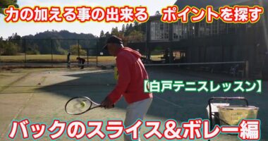 片手バックのスライス&ボレー片手のバックハンドの方で、肩甲骨廻りの筋力がある方は、片手のスピン系のボールを打てるようになりますが、ある程度の年齢を…