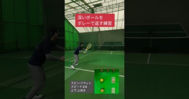 【深いボールをボレーで返す】スピン:フラットスピード:2.8上下:上向き【ポイント】・右足でボールに入る・「はじく」よりも「運ぶ」ように…