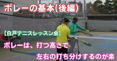ボレーの基本(後編)ボレーは打つ高さで、左右に打ち分けするのが楽基本的に肩より高い位置で捉えるボールは、左サイドに打ちのが楽で肘より低いボール右サ…