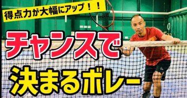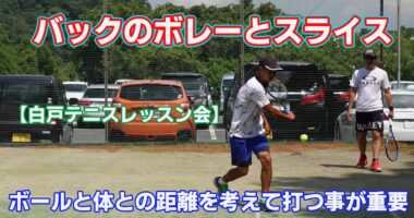 バックのボレーとスライスボールと体との距離を考えて、打つ事が重要です。ボールに近すぎるとボールに力が伝わらず、かえって相手のチャンスボールを与えて…