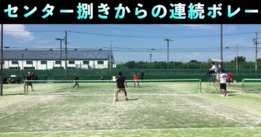 センター捌きからの連続ボレー【ソフトテニス】前衛の動きに注目!ボレーしてからの動きが素晴らしいですね。ぜひ参考にしましょう!宇杉式杯の試合…