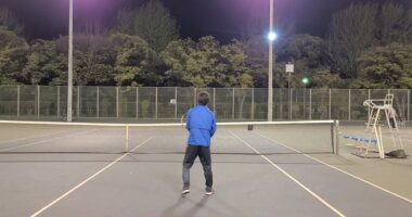 (30) ボレスト風のボレー練習 8回目の2#テニス #ダブルス #テニスダブルス練習会ミ晴れ、風あり、ナイター、ハードコート強風のためボ…