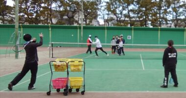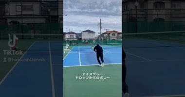 【ジュニアテニス】ドロップショットで相手を前に引き出してからのオープンコートへボレー…