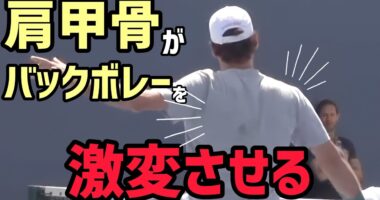 利き手でバックボレー打とうとしてない?バックハンドボレーを片手で打ちたい方、打ってるけどうまくいかない方に向けた動画です。慣れてきて肩甲骨で打つ感…