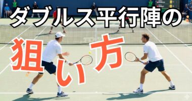 ダブルス平行陣の狙い方/ボレーの狙い方について平行陣でのボレーはクロスが基本となりますが、状況によっては攻撃的にストレートを狙ってみましょう。スト…