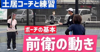【前衛の動きを徹底練習】テニス 土居コーチと一緒に積極的な前衛の動きを練習2023年2月8日の女子ダブルス交流イベントのレッスンコート、前衛の動きを…