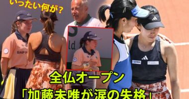 【全仏OP女子ダブルス3回戦】。加藤未唯 ボールガールにボールぶつけ失格。号泣ボールガールに謝罪も相手異議で失格に。SNS上「いったい何が?」。「海外報道」…