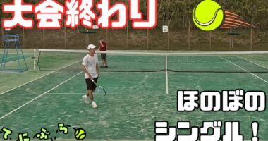 まったりシングルス、サーブ迷子の2人テニスを楽しむ仲間内のいつもの練習風景あれが苦手、これができないひっくるめて【楽しんだもの勝ち】の精神で少…