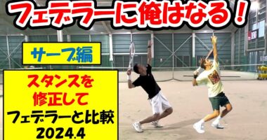 【テニス】【フェデラー】【federer】フェデラーに俺はなる!為に、サーブのフォーム修正! スタンスを修正してよりフェデラーに!〈2024年4月〉…